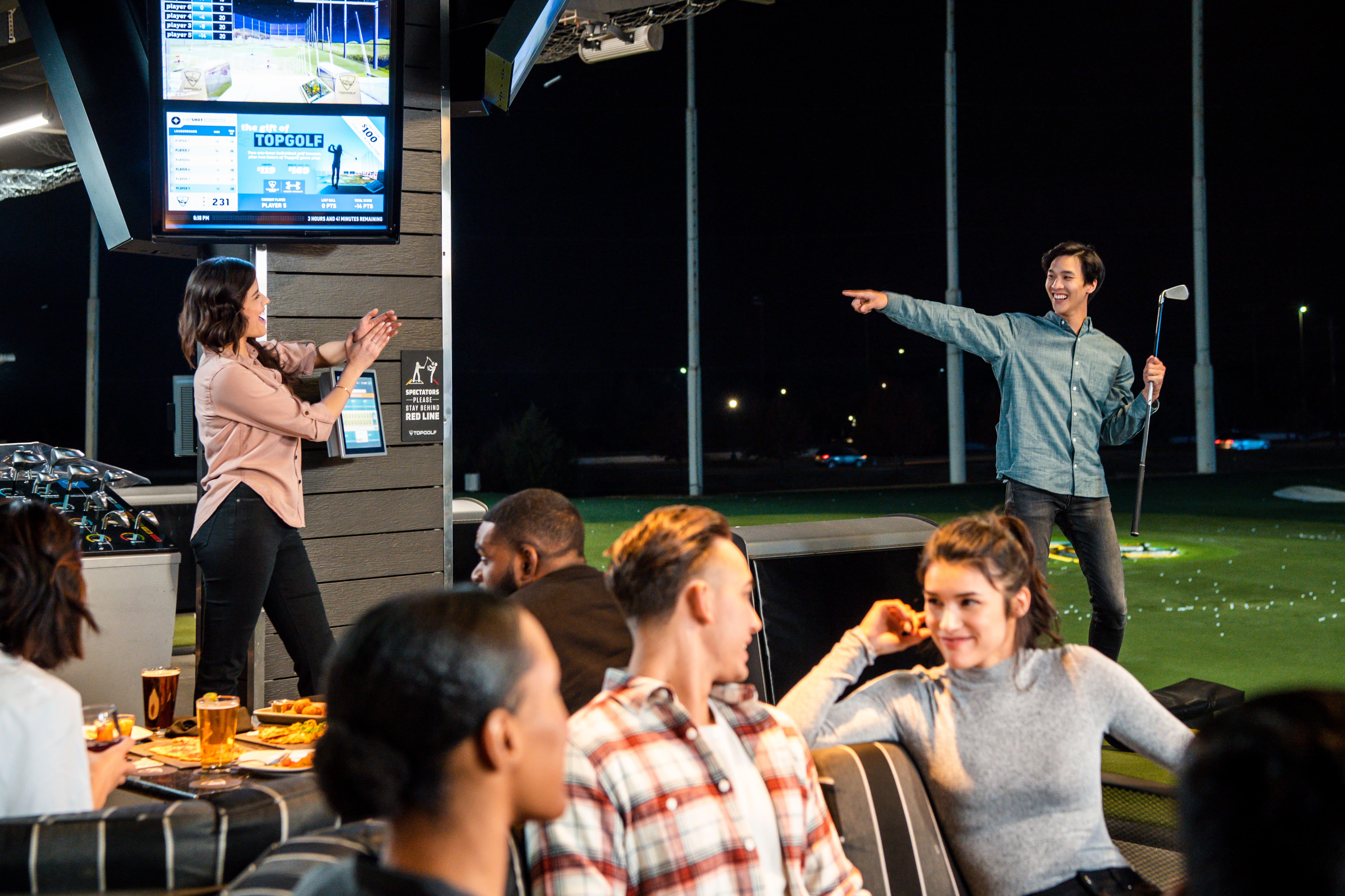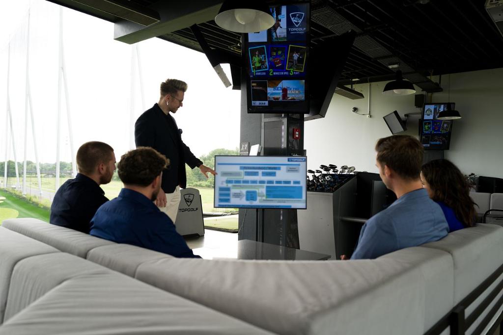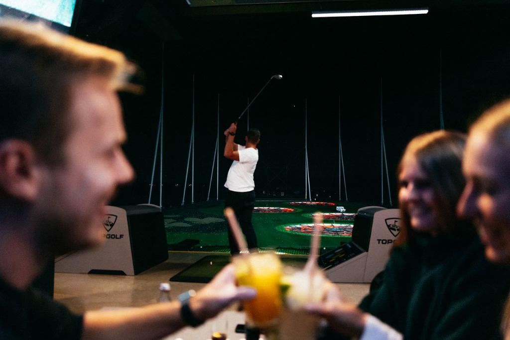 Topgolf Wien verfügt über eine hauseigene Küche mit mehreren Bars und Terrassen auf drei Etagen. Das Angebot reicht von Buffet-Varianten (Wiener Art, Mediterran, BBQ) über Frühstück und Business-Lunch bis hin zu Snacks und Live-Cooking. Für Events bietet Topgolf individuelles In-House-Catering mit All-Inclusive-Paketen für bis zu 1.300 Gäste.